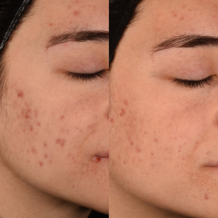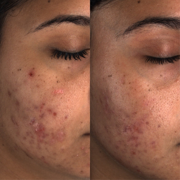 Our clinical included 30 participants, aged 17-45 with acne, who took the serving size (2 capsules per day) for 84 days, and did not change anything else with their skincare routine or diet. While individual results may vary, here are the results they experienced:
