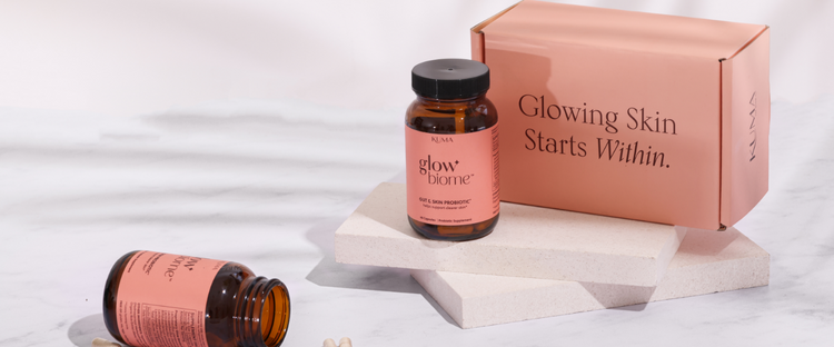 Glow Biome is a clinically proven skin probiotic. Each serving is packed with 15 billion CFUs of 6 probiotic strains that target the gut-skin connection plus prebiotics to help: